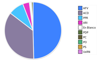 - Columna Porcentaje sobre Válidos no toma en cuenta los votos en blanco ni nulos (usado para D'Hondt de corresponder).