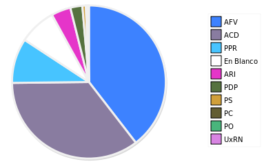 - Columna Porcentaje sobre Válidos no toma en cuenta los votos en blanco ni nulos (usado para D'Hondt de corresponder).