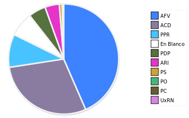 - Columna Porcentaje sobre Válidos no toma en cuenta los votos en blanco ni nulos (usado para D'Hondt de corresponder).