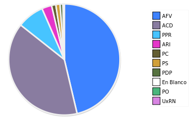 - Columna Porcentaje sobre Válidos no toma en cuenta los votos en blanco ni nulos (usado para D'Hondt de corresponder).