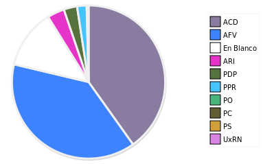 - Columna Porcentaje sobre Válidos no toma en cuenta los votos en blanco ni nulos (usado para D'Hondt de corresponder).