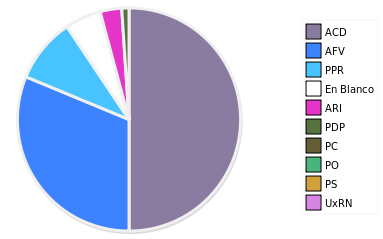 - Columna Porcentaje sobre Válidos no toma en cuenta los votos en blanco ni nulos (usado para D'Hondt de corresponder).