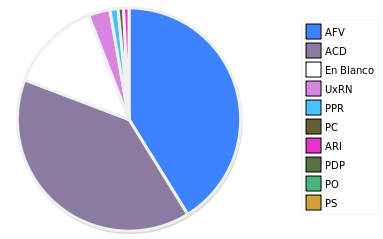 - Columna Porcentaje sobre Válidos no toma en cuenta los votos en blanco ni nulos (usado para D'Hondt de corresponder).