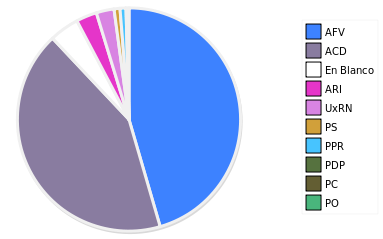 | 411 | ALIANZA CONCERTACION PARA EL DESARROLLO | 99 | 41.95% | -- | 44.39% |