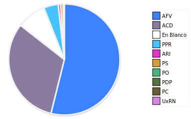 - Columna Porcentaje sobre Válidos no toma en cuenta los votos en blanco ni nulos (usado para D'Hondt de corresponder).