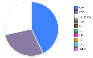 - Columna Porcentaje sobre Válidos no toma en cuenta los votos en blanco ni nulos (usado para D'Hondt de corresponder).