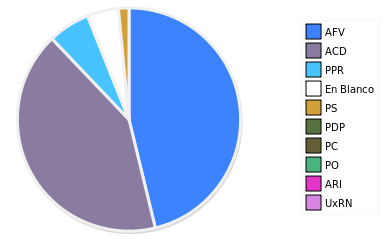 - Columna Porcentaje sobre Válidos no toma en cuenta los votos en blanco ni nulos (usado para D'Hondt de corresponder).