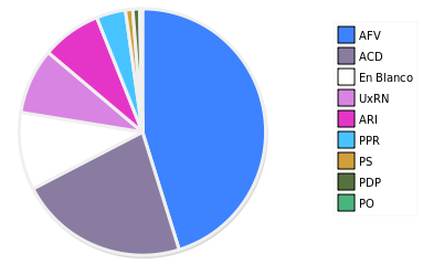 - Columna Porcentaje sobre Válidos no toma en cuenta los votos en blanco ni nulos (usado para D'Hondt de corresponder).