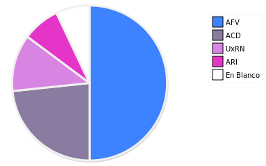 - Columna Porcentaje sobre Válidos no toma en cuenta los votos en blanco ni nulos (usado para D'Hondt de corresponder).