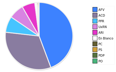 - Columna Porcentaje sobre Válidos no toma en cuenta los votos en blanco ni nulos (usado para D'Hondt de corresponder).