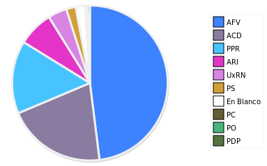 | 409 | ALIANZA FRENTE PARA LA VICTORIA | 98 | 47.80% | -- | 49.00% |