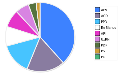 - Columna Porcentaje sobre Válidos no toma en cuenta los votos en blanco ni nulos (usado para D'Hondt de corresponder).