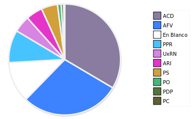 | 411 | ALIANZA CONCERTACION PARA EL DESARROLLO | 1006 | 33.21% | -- | 38.05% |