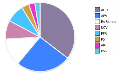 - Columna Porcentaje sobre Válidos no toma en cuenta los votos en blanco ni nulos (usado para D'Hondt de corresponder).