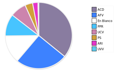 - Columna Porcentaje sobre Válidos no toma en cuenta los votos en blanco ni nulos (usado para D'Hondt de corresponder).
