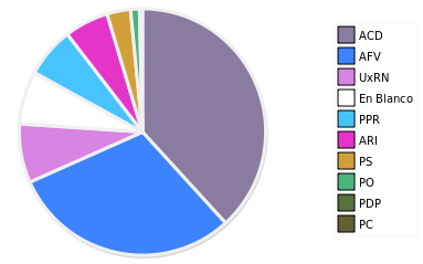 | 9 | PARTIDO DEMOCRATA PROGRESISTA | 1 | 0.38% | -- | 0.41% |