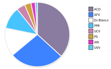 - Columna Porcentaje sobre Válidos no toma en cuenta los votos en blanco ni nulos (usado para D'Hondt de corresponder).