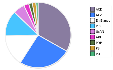 - Columna Porcentaje sobre Válidos no toma en cuenta los votos en blanco ni nulos (usado para D'Hondt de corresponder).