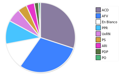 - Columna Porcentaje sobre Válidos no toma en cuenta los votos en blanco ni nulos (usado para D'Hondt de corresponder).