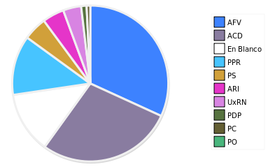 - Columna Porcentaje sobre Válidos no toma en cuenta los votos en blanco ni nulos (usado para D'Hondt de corresponder).