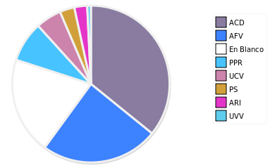 - Columna Porcentaje sobre Válidos no toma en cuenta los votos en blanco ni nulos (usado para D'Hondt de corresponder).