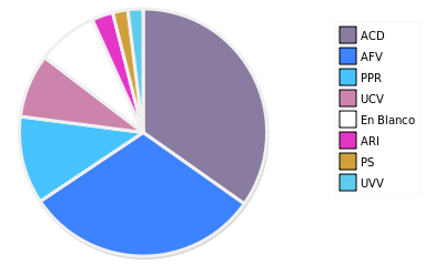 - Columna Porcentaje sobre Válidos no toma en cuenta los votos en blanco ni nulos (usado para D'Hondt de corresponder).