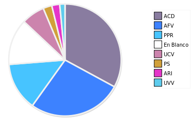 - Columna Porcentaje sobre Válidos no toma en cuenta los votos en blanco ni nulos (usado para D'Hondt de corresponder).