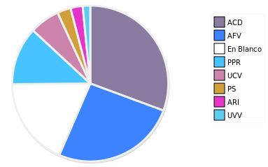 - Columna Porcentaje sobre Válidos no toma en cuenta los votos en blanco ni nulos (usado para D'Hondt de corresponder).
