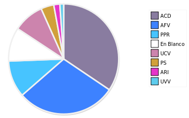 - Columna Porcentaje sobre Válidos no toma en cuenta los votos en blanco ni nulos (usado para D'Hondt de corresponder).