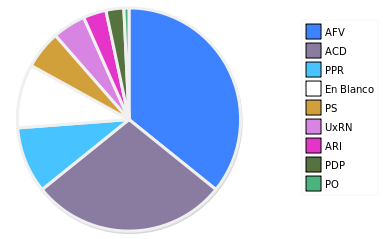 | 411 | ALIANZA CONCERTACION PARA EL DESARROLLO | 77 | 28.10% | -- | 31.30% |