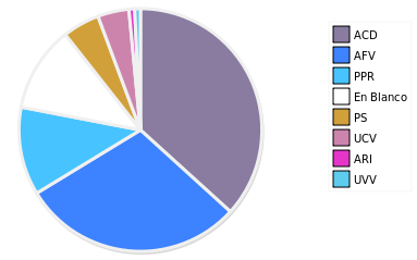 - Columna Porcentaje sobre Válidos no toma en cuenta los votos en blanco ni nulos (usado para D'Hondt de corresponder).