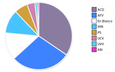 - Columna Porcentaje sobre Válidos no toma en cuenta los votos en blanco ni nulos (usado para D'Hondt de corresponder).