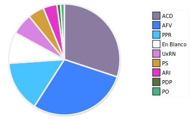 - Columna Porcentaje sobre Válidos no toma en cuenta los votos en blanco ni nulos (usado para D'Hondt de corresponder).