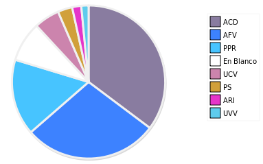 - Columna Porcentaje sobre Válidos no toma en cuenta los votos en blanco ni nulos (usado para D'Hondt de corresponder).