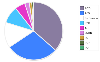 - Columna Porcentaje sobre Válidos no toma en cuenta los votos en blanco ni nulos (usado para D'Hondt de corresponder).