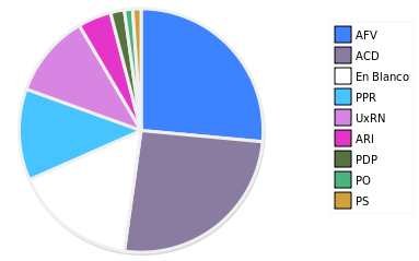 - Columna Porcentaje sobre Válidos no toma en cuenta los votos en blanco ni nulos (usado para D'Hondt de corresponder).