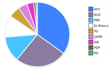 - Columna Porcentaje sobre Válidos no toma en cuenta los votos en blanco ni nulos (usado para D'Hondt de corresponder).