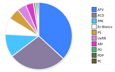 - Columna Porcentaje sobre Válidos no toma en cuenta los votos en blanco ni nulos (usado para D'Hondt de corresponder).