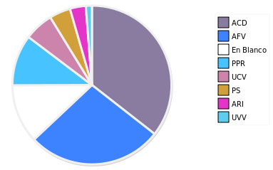 - Columna Porcentaje sobre Válidos no toma en cuenta los votos en blanco ni nulos (usado para D'Hondt de corresponder).