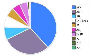 - Columna Porcentaje sobre Válidos no toma en cuenta los votos en blanco ni nulos (usado para D'Hondt de corresponder).