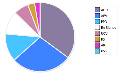 - Columna Porcentaje sobre Válidos no toma en cuenta los votos en blanco ni nulos (usado para D'Hondt de corresponder).