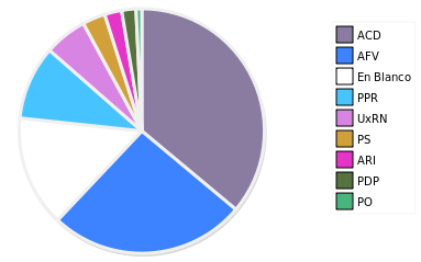 - Columna Porcentaje sobre Válidos no toma en cuenta los votos en blanco ni nulos (usado para D'Hondt de corresponder).