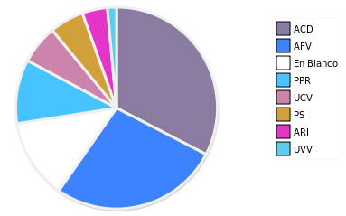 - Columna Porcentaje sobre Válidos no toma en cuenta los votos en blanco ni nulos (usado para D'Hondt de corresponder).
