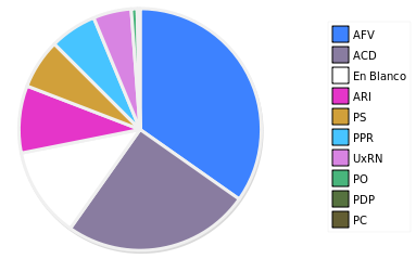 - Columna Porcentaje sobre Válidos no toma en cuenta los votos en blanco ni nulos (usado para D'Hondt de corresponder).