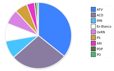 - Columna Porcentaje sobre Válidos no toma en cuenta los votos en blanco ni nulos (usado para D'Hondt de corresponder).
