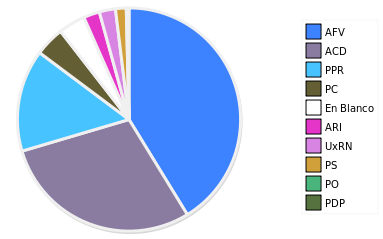 - Columna Porcentaje sobre Válidos no toma en cuenta los votos en blanco ni nulos (usado para D'Hondt de corresponder).