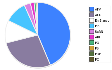 - Columna Porcentaje sobre Válidos no toma en cuenta los votos en blanco ni nulos (usado para D'Hondt de corresponder).