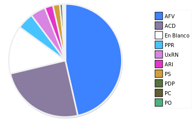 - Columna Porcentaje sobre Válidos no toma en cuenta los votos en blanco ni nulos (usado para D'Hondt de corresponder).