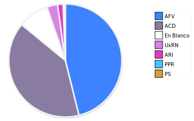 - Columna Porcentaje sobre Válidos no toma en cuenta los votos en blanco ni nulos (usado para D'Hondt de corresponder).