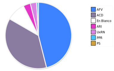 - Columna Porcentaje sobre Válidos no toma en cuenta los votos en blanco ni nulos (usado para D'Hondt de corresponder).